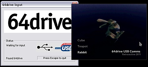 However to show what the USB port is capable of, Marshallh created a small demo which allows your N64 and PC to interact, meaning you use the PC mouse to control the small demo. Basicly you load the demo ROM via USB and start a small PC application before turning on the N64, and voila - the N64 is controlled from a PC.