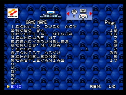 | Regional Title | International Superstar Soccer 2000 | | Publisher | Konami | | Developer | Konami (Major A Team) | | Release Date | | | GamePak ID | NO GAMEPAK ID | | GamePak Region ID | BRA |  | Brazil | | CIC Lockout Type | | | PCB Type | | | ROM Size | 128 Mbit | | ROM Revision | 1.0 | | Game Type | Sports | | Game Language | | | Players | 1 - 4 | | Multiplayer Mode | Simultaneously |